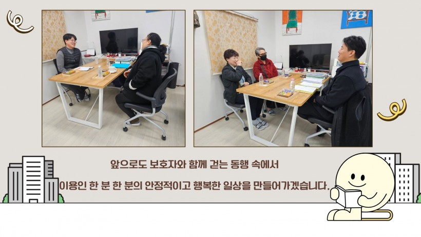 앞으로도 보호자와의 지속적인 소통을 바탕으로 이용인의 안정적인 이용과 건강한 일상을 함께 만들어가겠습니다.